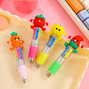 Simpatico cartone animato Mini penna a sfera a quattro colori Gel di silice penna corta facile da trasportare per studenti penna a sfera multicolore